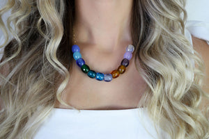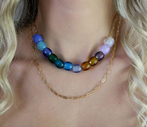 All beads can be removed from the chain and styled as any combination of beads. Wear just one for a simple look, all green/blue beads for a beautiful beach day or just our beautiful chain that can be worn as a lariat. The styling options are endless. The prong attached to the chain makes the necklace assembly process easy and fun. Once beads are on the chain, make sure to use our provided "anchor" clasp to safely secure all beads on the chain.