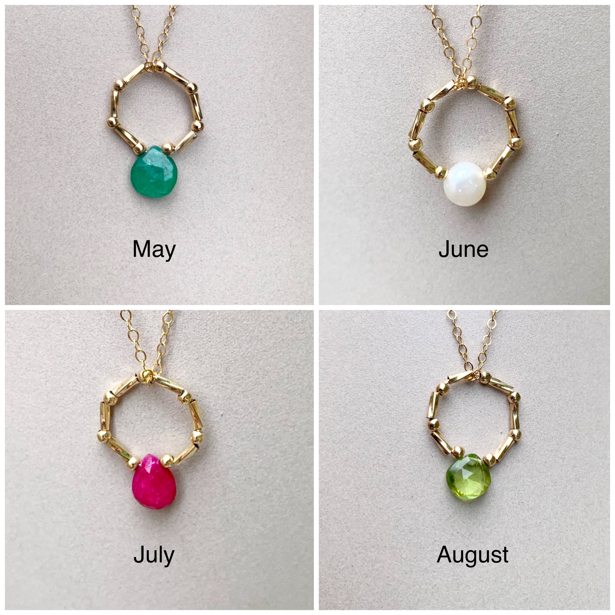 These genuine birthstones charm necklaces make a thoughtful and unique gift for yourself or your loved ones.