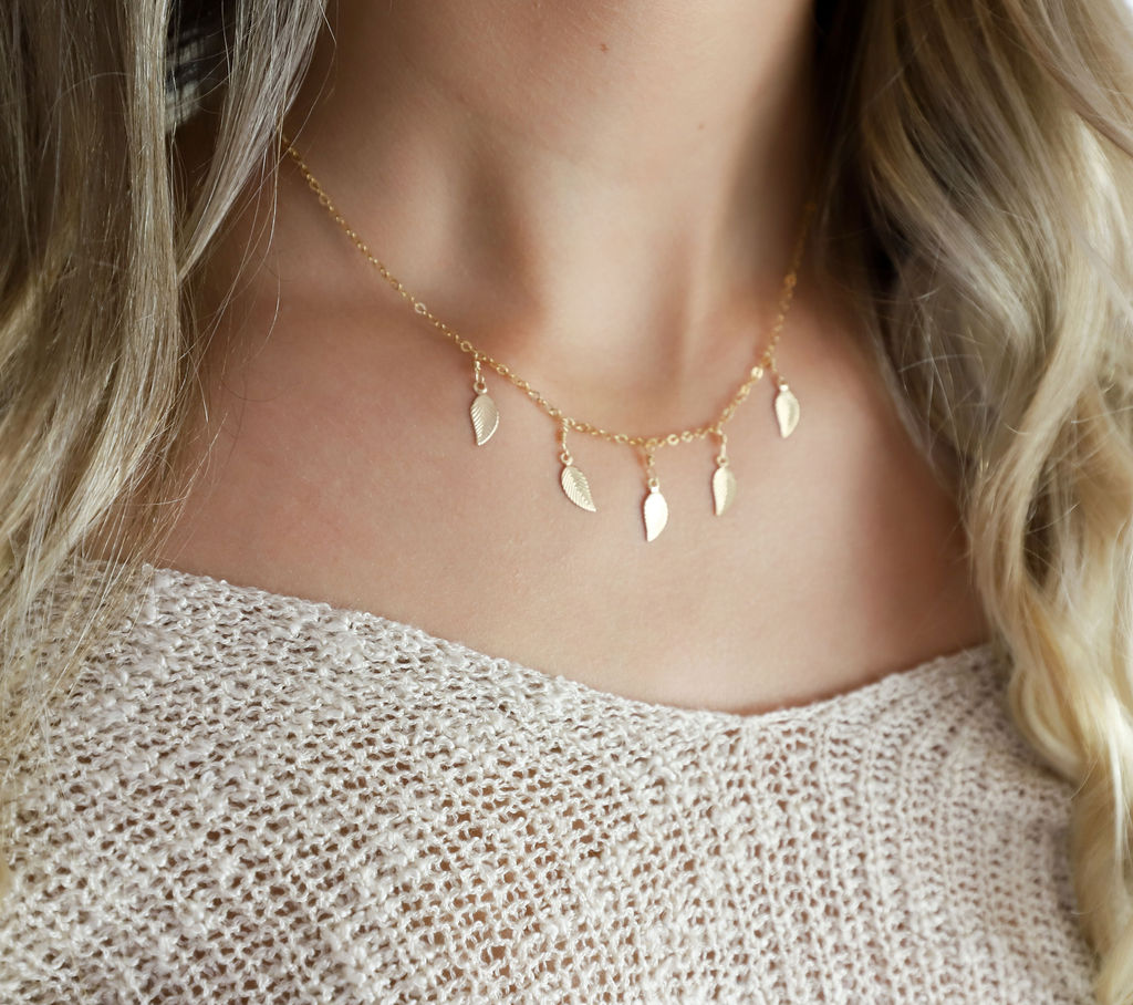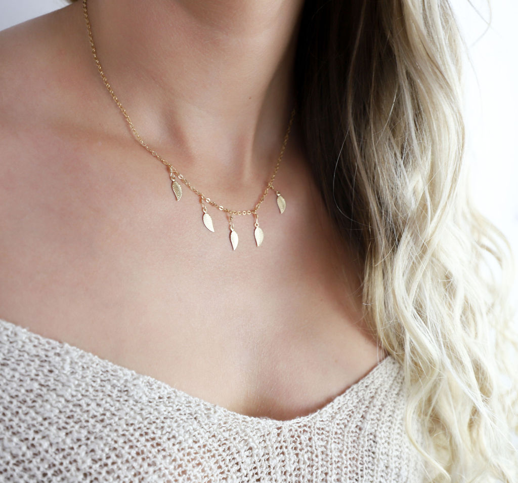 This delicate chain with tiny leaves is very light and great for everyday wear. A simple necklace that looks great both layered and alone. Our fastening bead on the chain lets you adjust the length as needed. You can play with the length of this necklace by wearing it as a choker, full length or even a lariat with leave hanging on one side of the neck for the unique and delicate look.